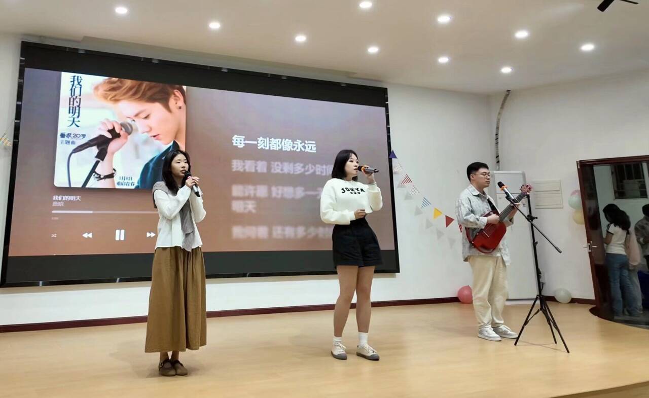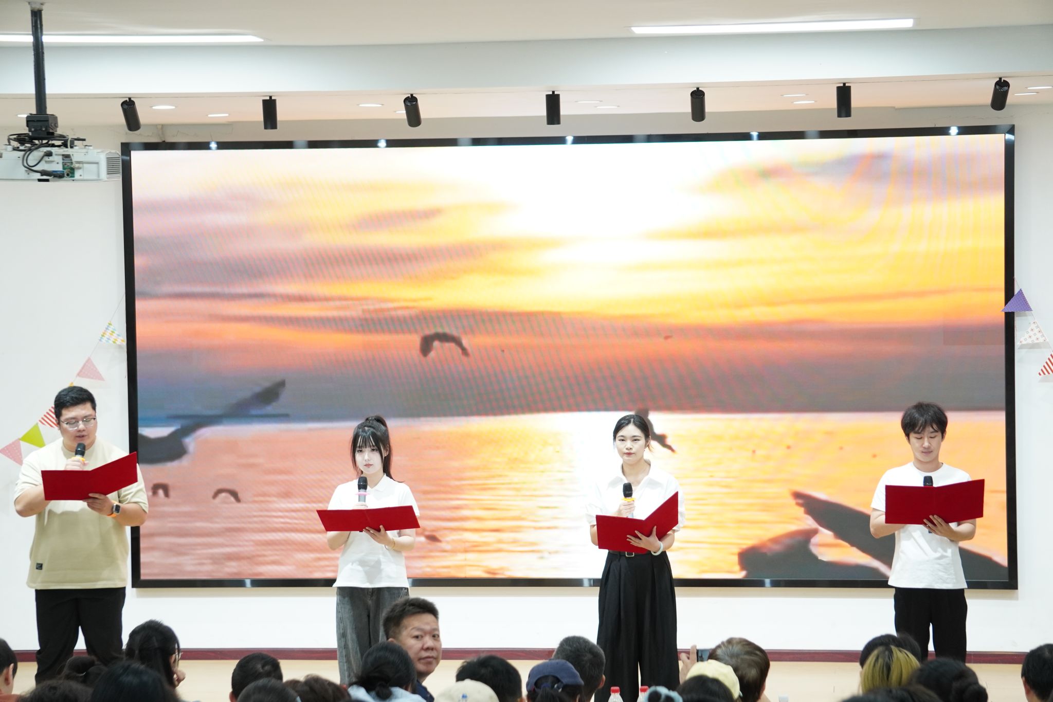 舞蹈《overzone》踏碎沉闷,让活力在每个节拍里肆意蹦跳,是青春打破桎梏、张扬本色的鲜活注脚;《飘向北方》的歌声裹挟追梦孤勇,穿云裂石,唱出少年不畏路遥、奔赴理想的赤诚;朗诵《致未来的叙事者》以声韵织就理想锦缎,是传媒人对记录时代、传递温度的初心叩问;合唱《我们的明天》将少年期许融成满室暖响,恰如“春风拂过心湖漾”,在心底晕开温柔褶皱,藏着彼此同行、共赴山海的青春约定。