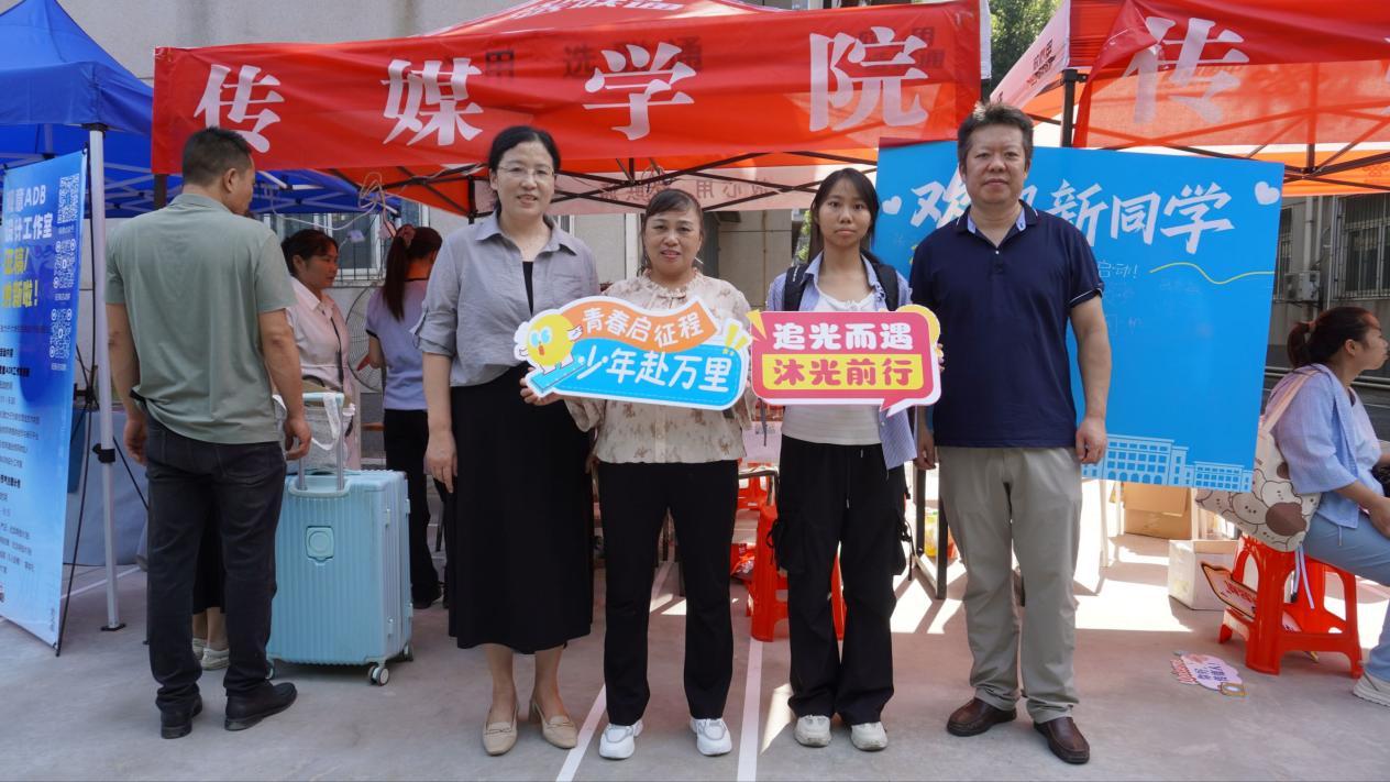 为营造便捷、温馨的报到体验,学院提前谋划,周密安排,在报到现场设立了咨询引导、资料审核、保障服务等多个功能区,各环节衔接顺畅,秩序井然。由高年级同学组成的“传媒青年先锋队”成为现场最亮眼的风景线,他们身着统一服装,主动帮助新生搬运行李,耐心引导完成信息登记、材料提交等手续,细致解答宿舍安排、课程设置、文体活动、校园生活等各类问题,以真诚和热情消除了新生初来乍到的陌生与不安。