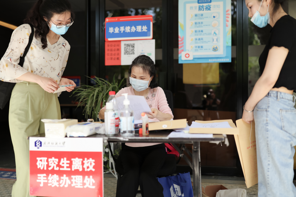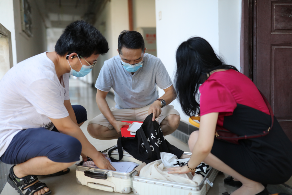 17:00点,曾书记、沈院长和刘院长又来到学生宿舍,对学生进行“最后的叮咛”,“你们是最特殊的一届毕业生!因疫情,半年未返校。在宿舍整理东西的时候要注意开窗通风,要戴口罩,中午食堂有免费的饭菜,凭畅行码就可以去吃,天气热,注意喝水……”曾书记的反复叮咛充满了不舍。