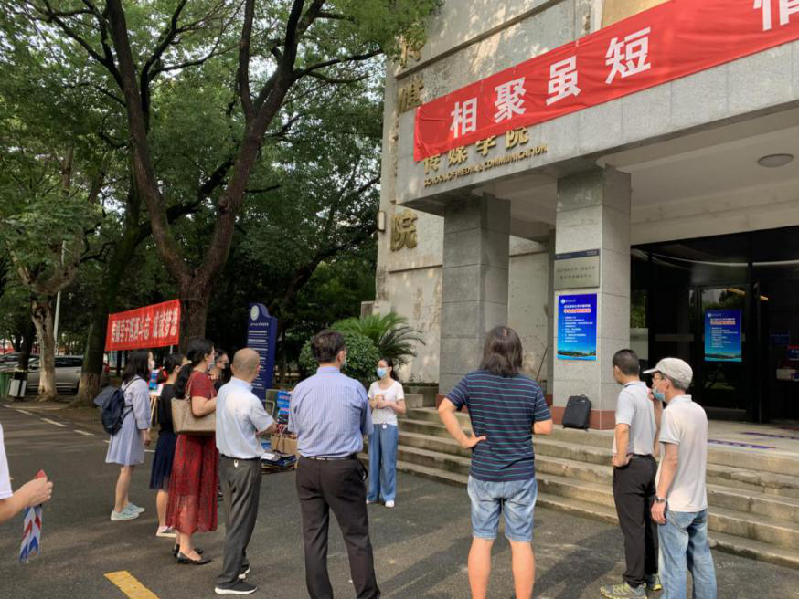 7点40分,今天返校的第一名同学昌婉琴同学到校了,远远看着等候在学院门口的老师们,她有些激动。她说,一进校门就感到异常亲切,这几个月在家里无时不刻不在想念着学校,想念着和老师、同学们见面……今天终于回来了,终于见到了,但一想到马上又要同大家离别,走向社会、奔赴工作岗位,就很想哭。