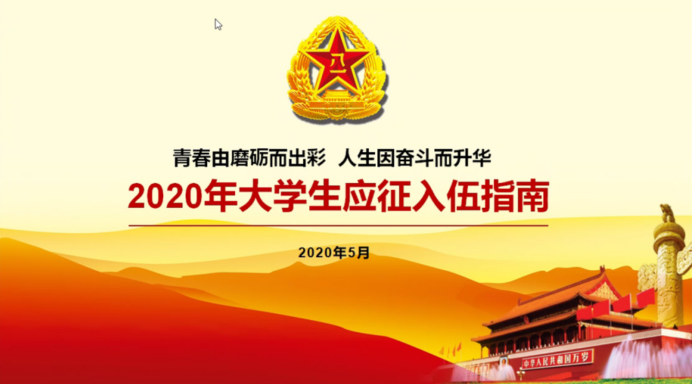 5月22日下午4:00雷火竞技官网2018级辅导员杜老师面向学院所有同学就2020年大学生国防知识以及应征入伍相关问题采取线上云端会议模式开展了一次政策宣讲活动。
