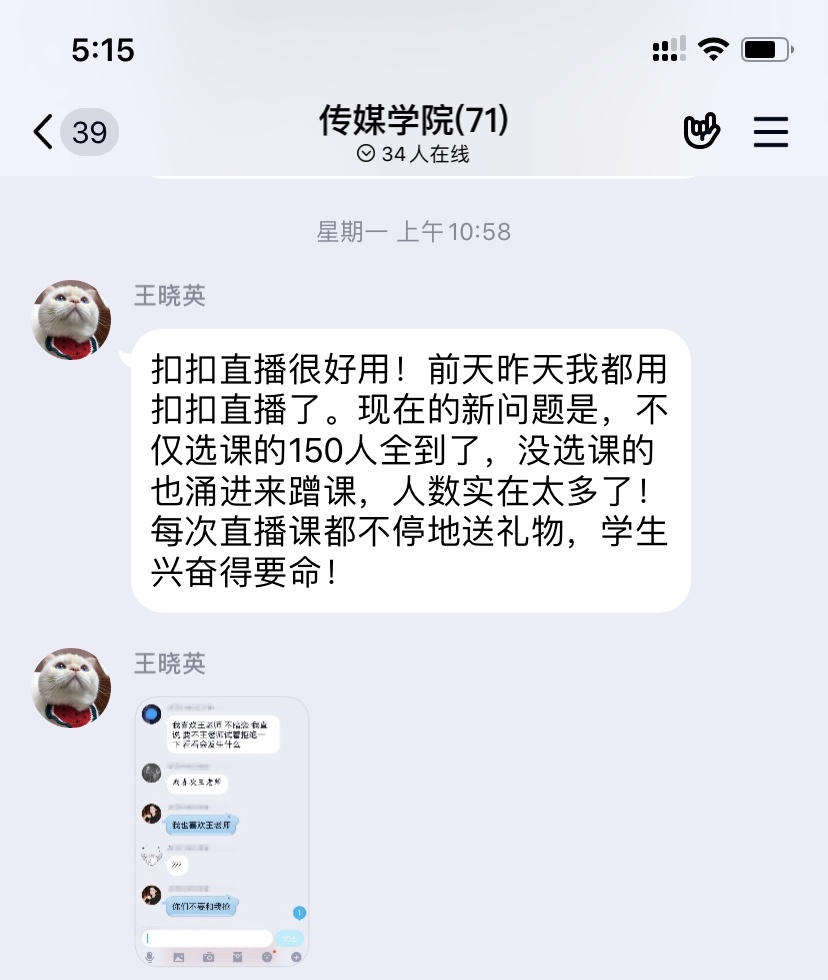 雷火竞技官网专业课教师王晓英经常在网课结束后在教职工群里分享自己当天上课的感受,她说:“网上直播课远比她想象的效果好,许多同学听过一次后还拉着爸爸妈妈一起听,学生兴奋老师也兴奋,上课气氛十分活跃”。许多英老师纷纷表示,这是一次推进信息化教学改革和学院教学高质量发展的良机,我们教师要紧跟发展形势,强化信息化技术在课堂上的实施,以新的理念、新的形式、新的观点、新的面貌,打磨网课。