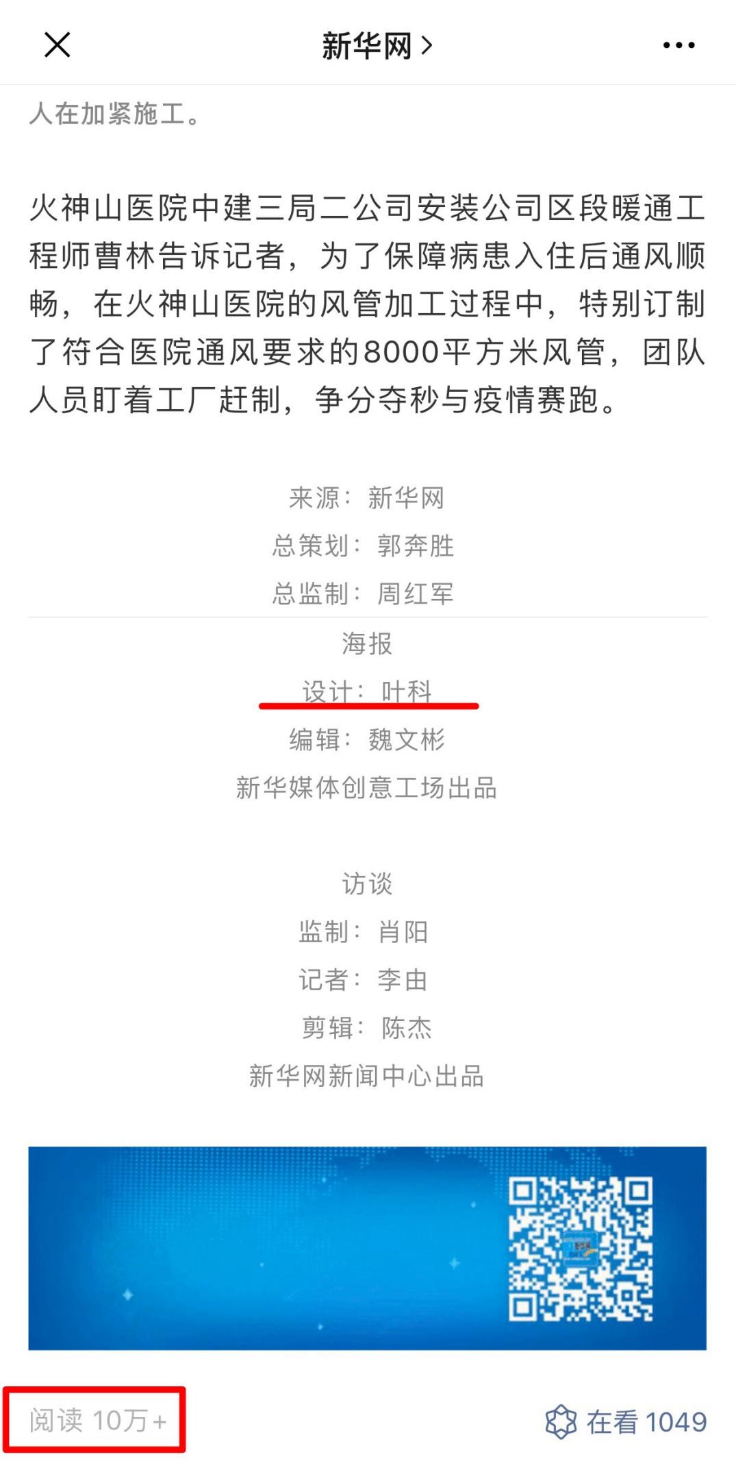 在2020年2月2日的新华网公众号《“神”队友上线》一文中,我校雷火竞技官网动画专业叶科老师的“抗疫情”插画被采用并放置在醒目位置。在文章发布后,阅读量迅速破十万。这代表着我校教师的设计水平得到广泛的认可。