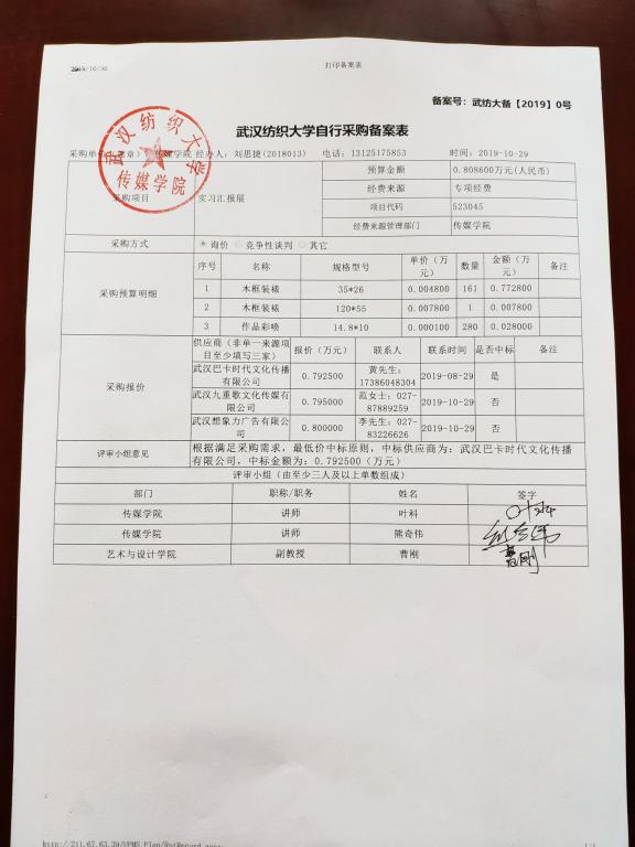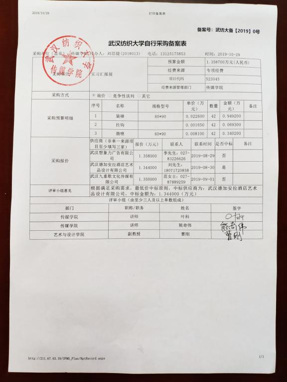 雷火竞技官网实习汇报展自行采购公示