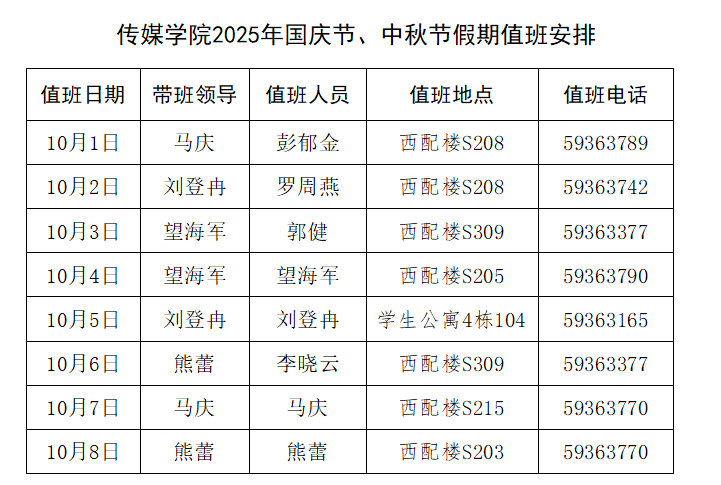 雷火竞技官网2025年国庆节、中秋节假期值班安排